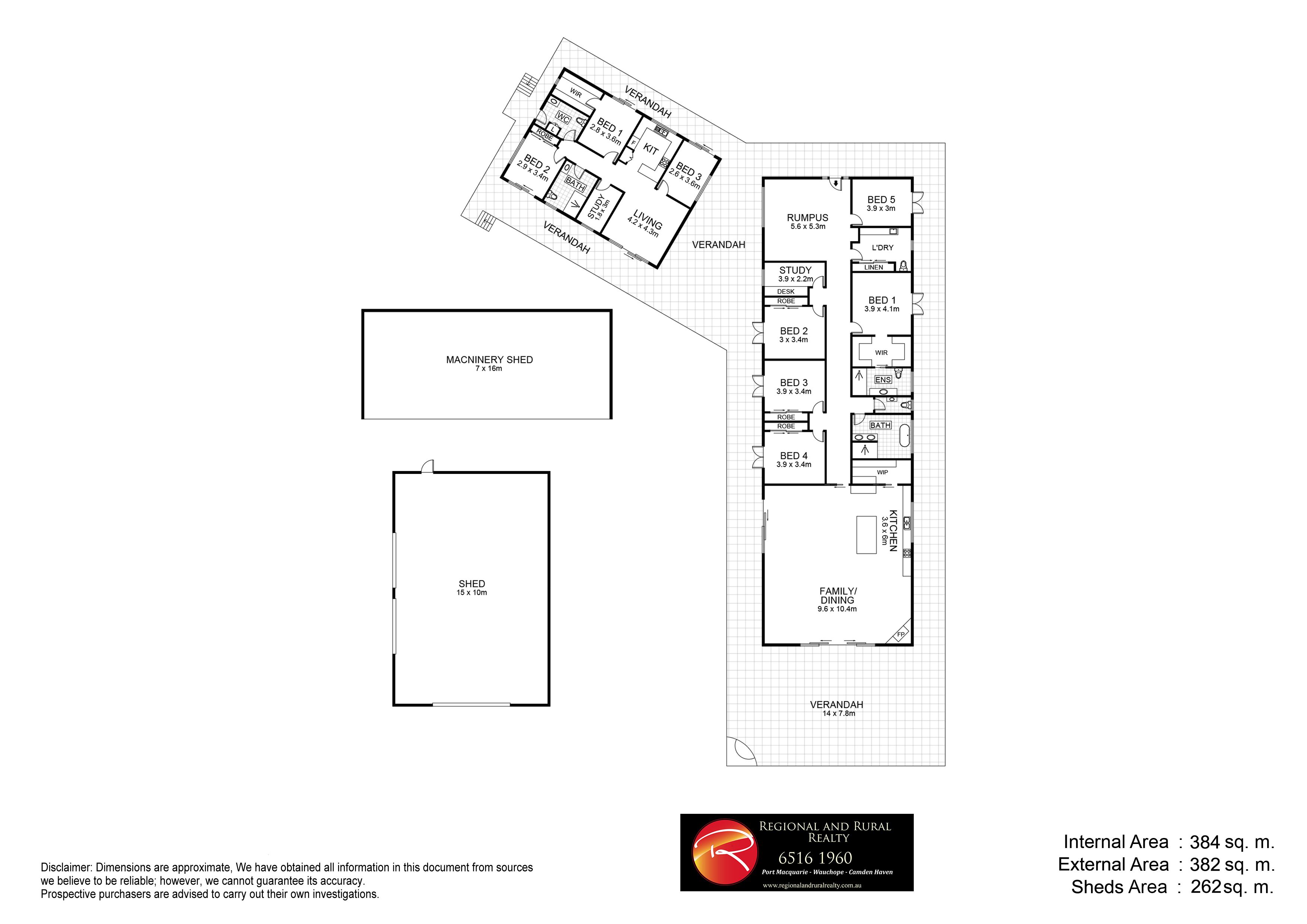 The second dwelling is fully self-contained with 3 bedrooms, kitchen, an accessible bathroom, laundry, and study, and wrapped within a wide covered verandah.